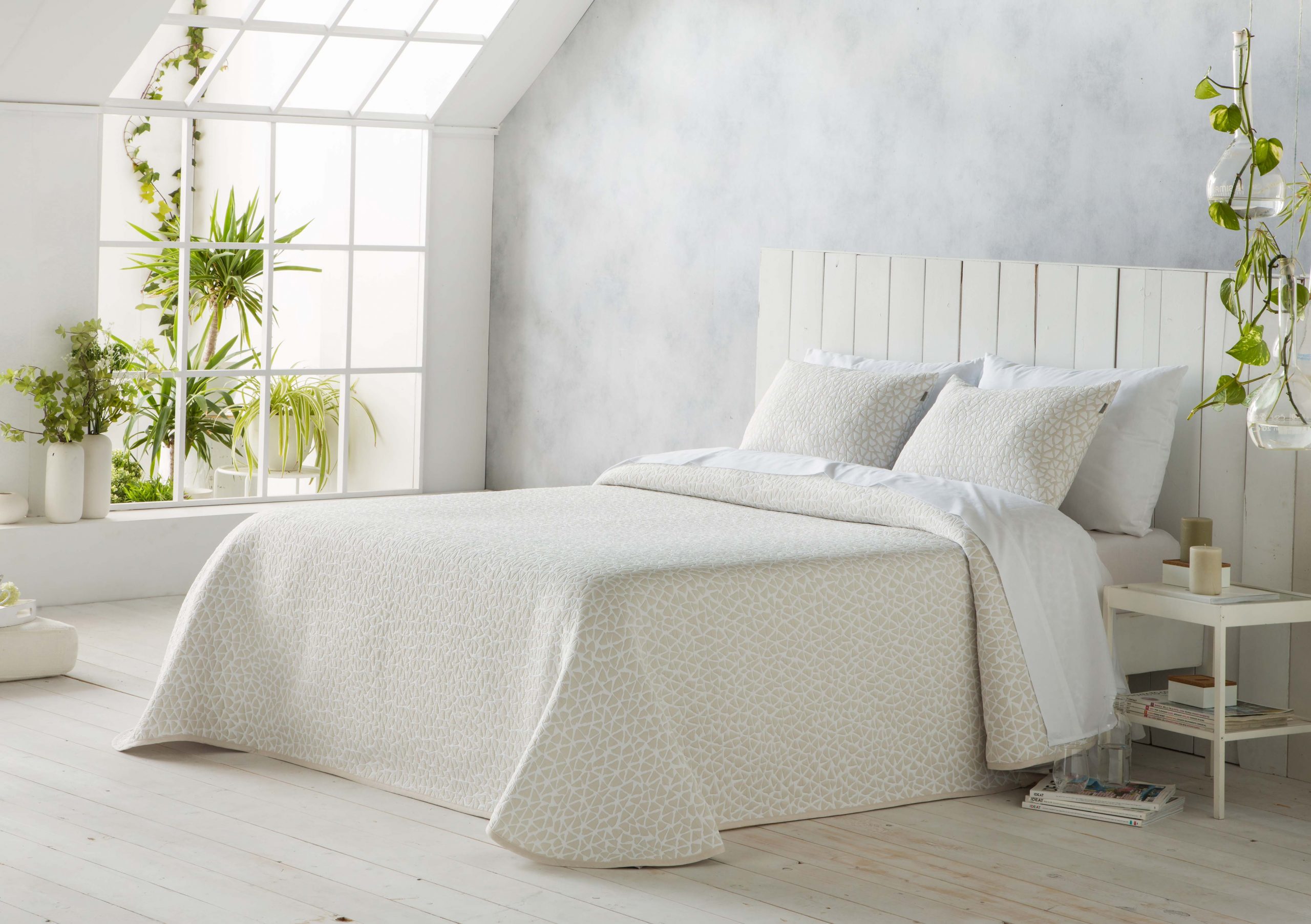 Colcha modelo GAUDI realizada en tejido jacquard de tacto suave y muy agradable. Producto de máxima calidad.